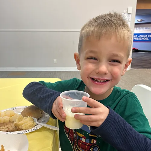 Families join us for a warm meal together, celebrating gratitude and community.